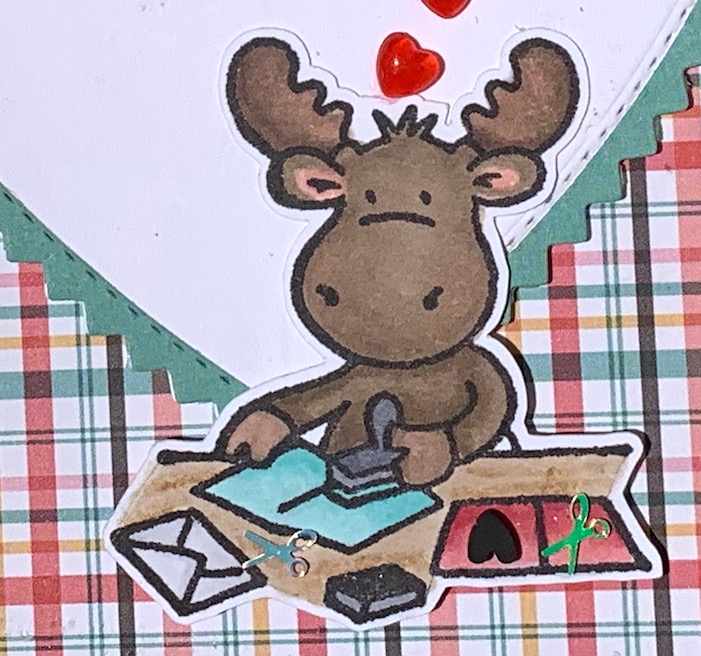 To create this card, I used one of Kat‘s “Layering Nested Hearts Dies,” one of the “Stitched Scalloped Heart Dies,” Riley & Co’s “Stamping Riley” cling stamp, and Riley’s “One Stamp” sentiment stamp. I colored in all the images with Copic Markers.