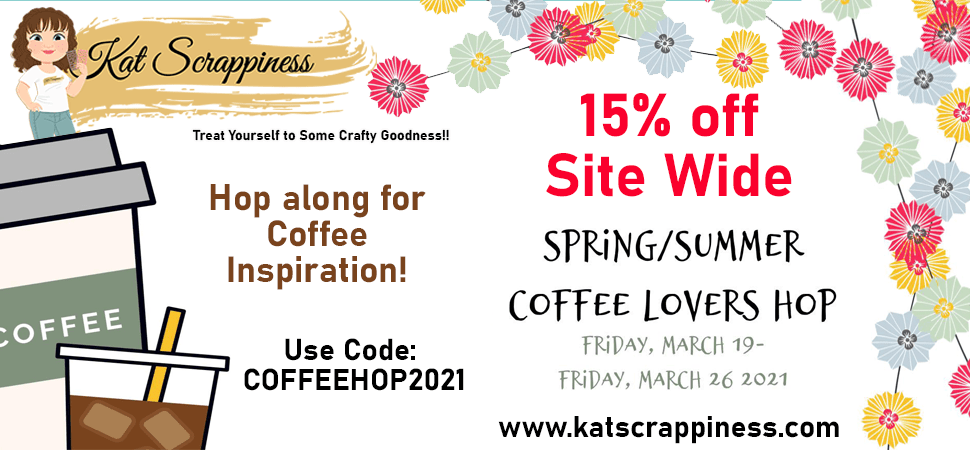 Welcome to the 2021 Spring/Summer Coffee Lovers Blog Hop by the Coffee Loving Cardmakers. You should have arrived here from the Kat Scrappiness Blog post. Kat is once again a super sponsor and is offering 15% site wide, using the discount code COFFEEHOP2021. Our design team members all joined in to show you some of the fun and coffee themed cards they made using some of the Kat Scrappiness “Coffee” related products. We currently have over 100 coffee-themed products available here!