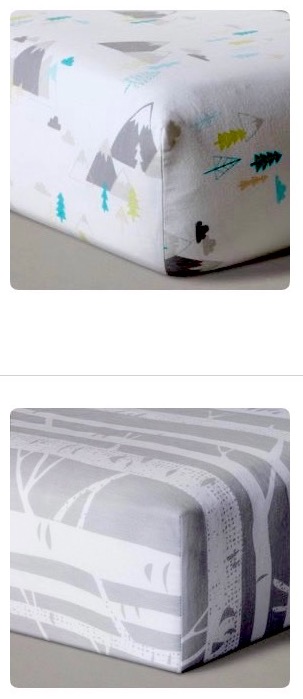 Colton’s nursery has an “outdoor adventure” theme and with colors found in this crib bedding pictured below . . .